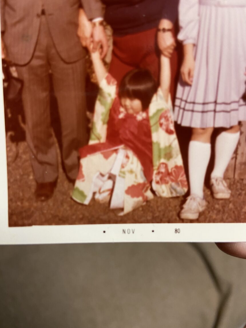 3歳の私は髪飾りと着物があまりにも嫌すぎて最終形態は「おさる🐒」となりました😅