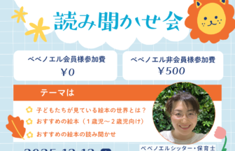 こんにちは!みかこ先生です。急ですが、今週の金曜日12月12日に絵本のイベントをします。私が所属しているベビーシッター会…